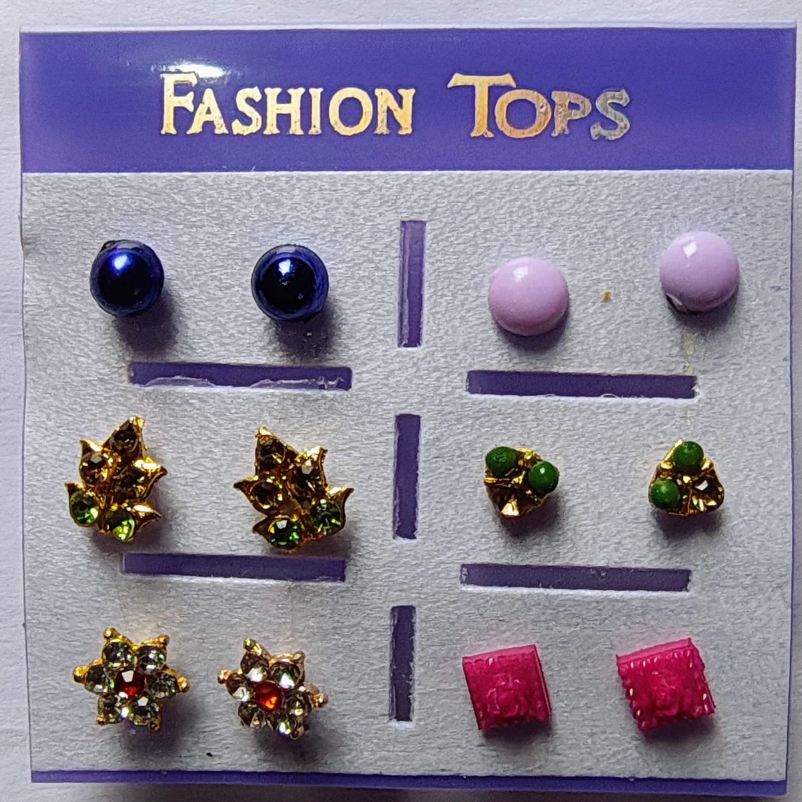 Add charm to your look with this beautiful collection of 6 pairs of Fashion Tops Earrings. Each pair comes in a unique design and color, perfect for matching with any outfit. These lightweight and elegant studs are ideal for daily wear, parties, and festive occasions. A must-have combo for every fashion lover!