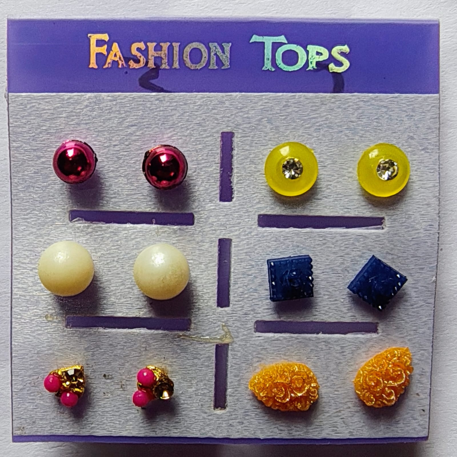 Add charm to your look with this beautiful collection of 6 pairs of Fashion Tops Earrings. Each pair comes in a unique design and color, perfect for matching with any outfit. These lightweight and elegant studs are ideal for daily wear, parties, and festive occasions. A must-have combo for every fashion lover!