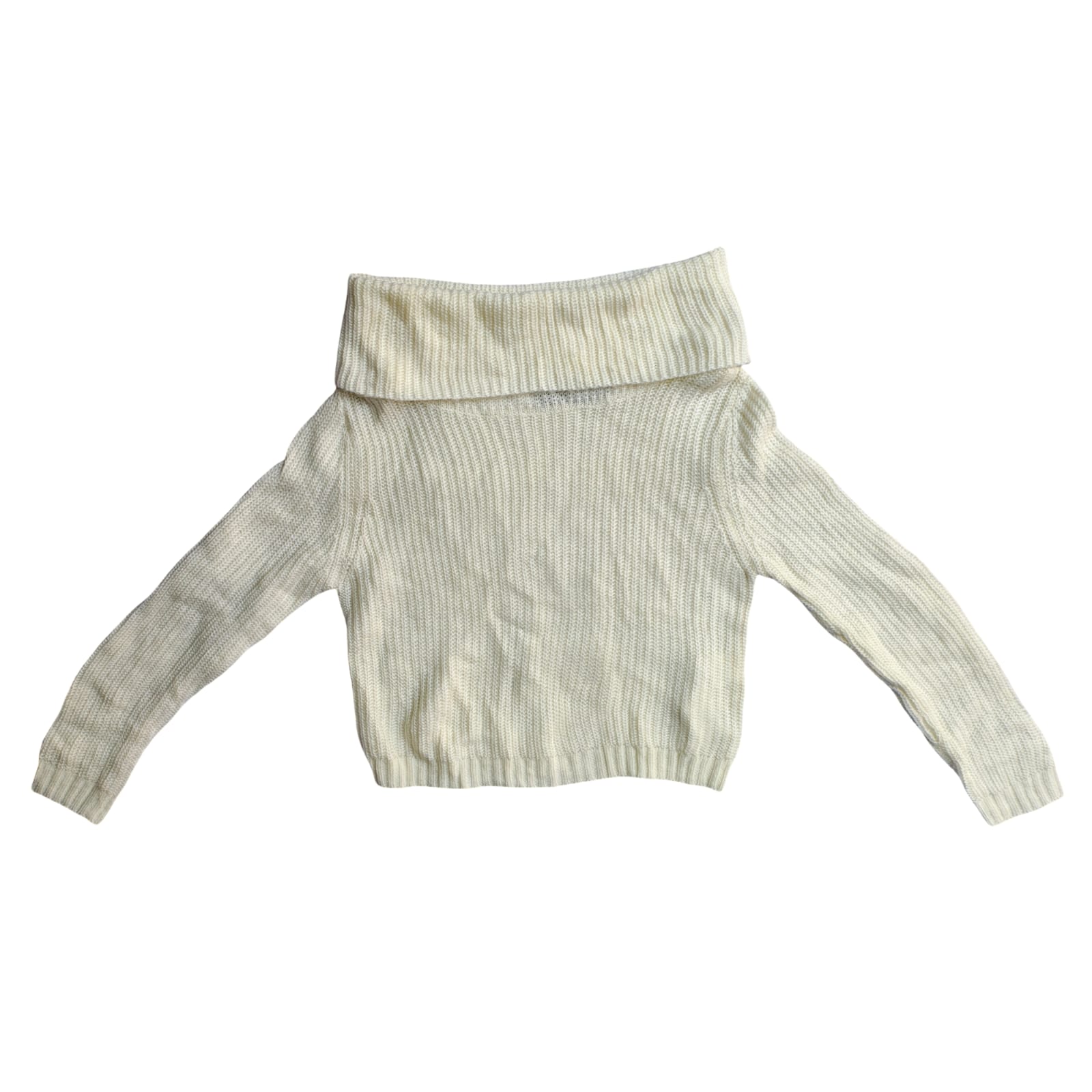 A warm, textured off-white/cream sweater made from a chunky ribbed knit. It features a large, comfortable cowl neck and a flattering raglan sleeve design, making it an essential cozy piece for winter.